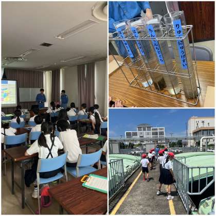 校区内にある平野下水処理場に行きました。社会科の「命とくらしをささえる水」の学習の一環です。子どもたちはしっかりと見学し、職員の方のお話を聞いていました。下水処理場でどんな話を聞いたのかお家でも聞いてあげてください。