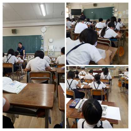 始まりの場面と終わりの場面から想像を広げてお話を考えます。