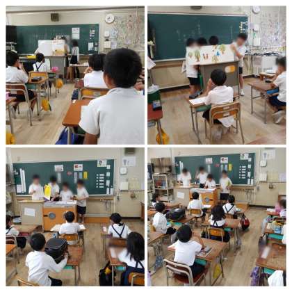 図書委員会の児童が1,2年生に絵本の読み聞かせをしています。