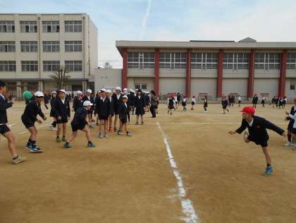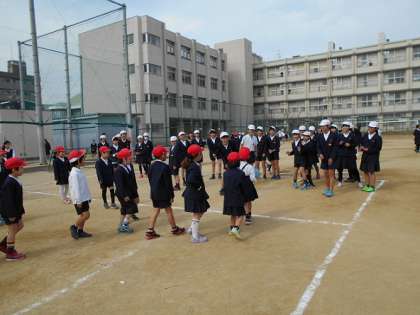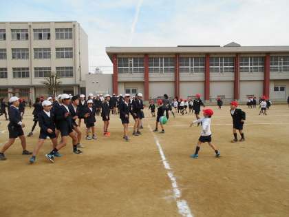 1年生の前では、6年生も少し照れ気味です。ボールを優しく投げる様子は、お兄ちゃん、お姉ちゃんらしさが出ていました。