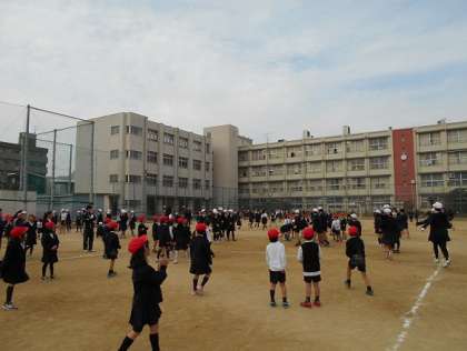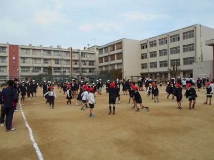「6年生って強いなあ。」と真面目な顔をして話す1年生。「6年生を当てたよ。」、「6年生のボールを受けた」など、満足げな様子でした。