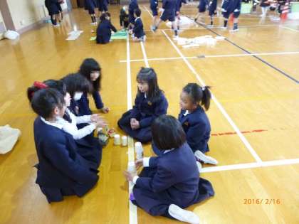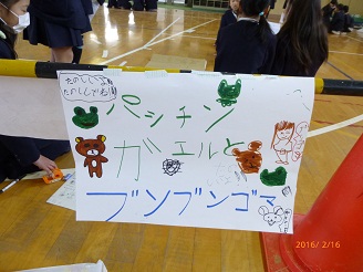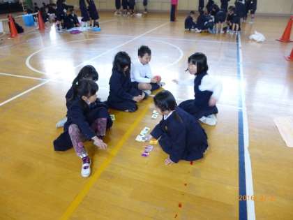 2年生が1年生に遊び方の説明をして、一緒になかよく活動します。