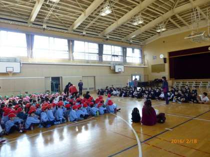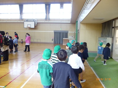 来年度1年生になるこどもと1年生の児童の交流会がありました。