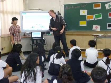 J先生との英語学習が始まりました。子ども達は、とても楽しそうです。