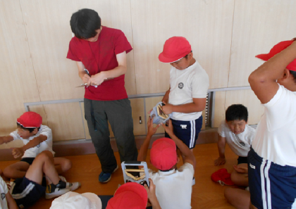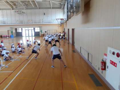5年生と6年生は、50m走、ソフトボール投げ、立ち幅跳び、上体起こし、長座体前屈、反復横跳び、20mシャトルラン、握力を測定します。