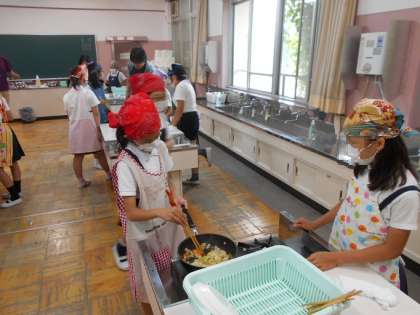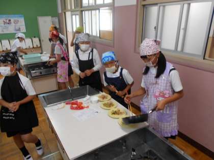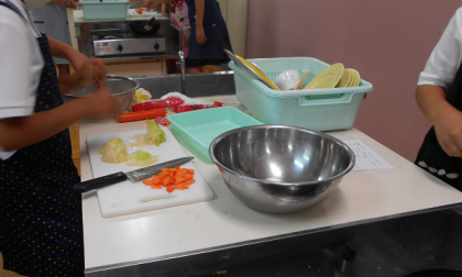 昨日に引き続き、次の学級で「野菜炒め」をしました。