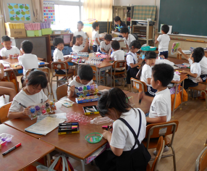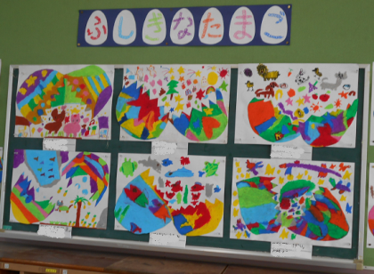 いろいろな教科の学習をしています。教室の後ろにも可愛い掲示が・・・