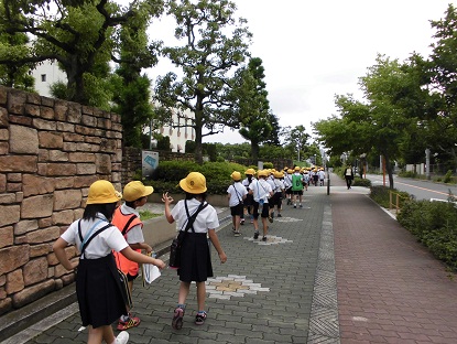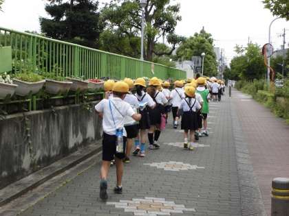 学校に帰ってきて、探検してきたことをワークシートにまとめました。