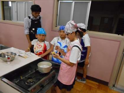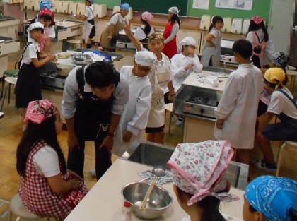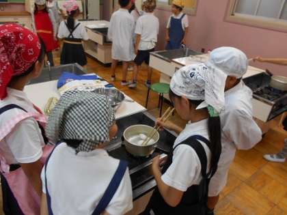 6月16日、午前中に調理実習をした5年1組に引き続き、午後からは、5年2組が調理実習をしました。「ゆで玉子」を作りました。