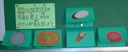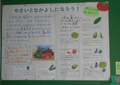 「野菜」のことについて、わかりやすく掲示してあります。懇談会で来られたときに、見てください。
