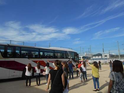 保護者の方達に笑顔で手を振り、7時23分出発しました。