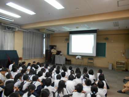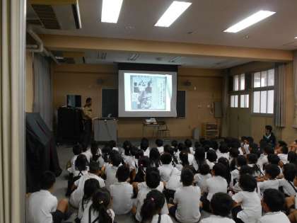 本年度も、天王寺動物園の方に来ていただき、戦争時の動物園の様子を話していただきました。それは、とても悲しい話でした。子どもたちは、真剣に聞いていました。