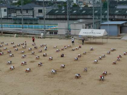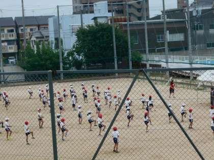運動場で運動会のダンスの練習です。覚えたところまで、一生懸命練習をしています。