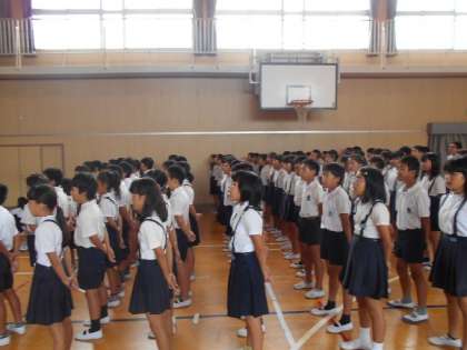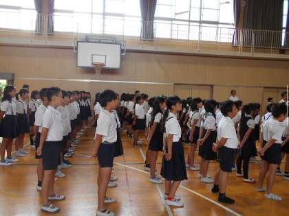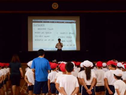 音楽集会で、校歌と運動会の歌の練習をしました。