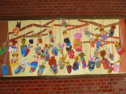 玄関の掲示板には、かわいい1年生の作品が・・・。思わず、笑顔になります。