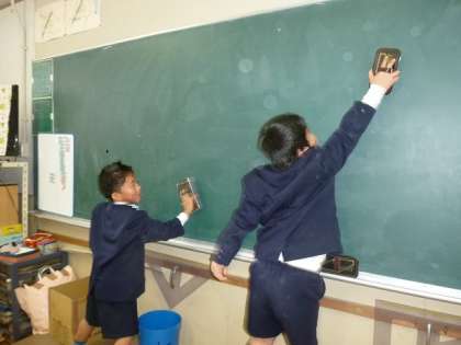 1年生のそうじの様子も4月から比べると、とても上手になってきました。