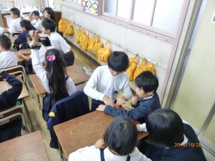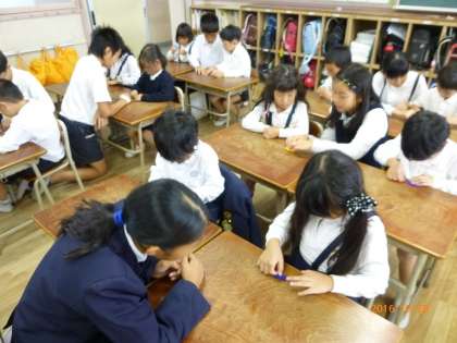全学年で折った折り鶴、平和集会の後、6年生がピース大阪へ・・・