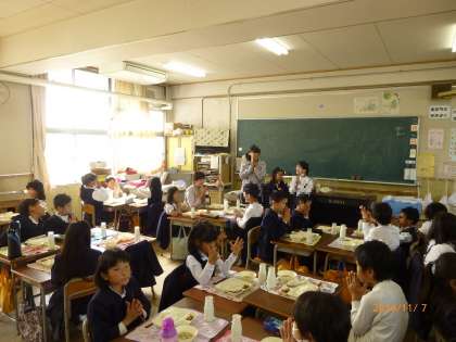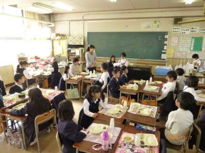 栄養教諭による給食時間の学級訪問が始まりました。今日は、3年生です。