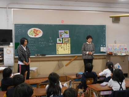 栄養教諭の先生にも一緒に参加してもらっています。給食のサラダとの共通点・・・