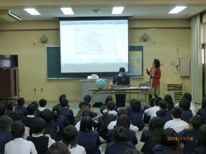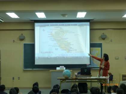 5年生は、ゲストティチャーを招いて、ペルーについて学習しました。