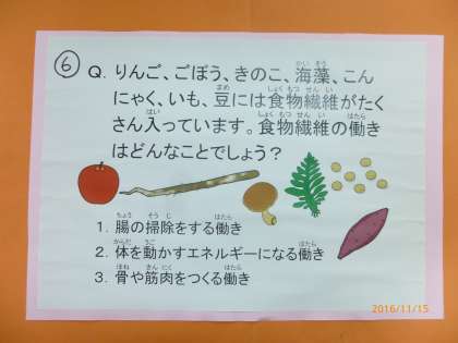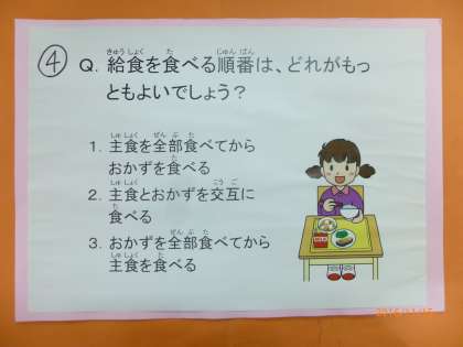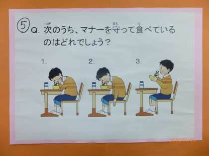 クイズを通して、マスクの着用、栄養、マナー・・・いろいろなことを学んでいます。