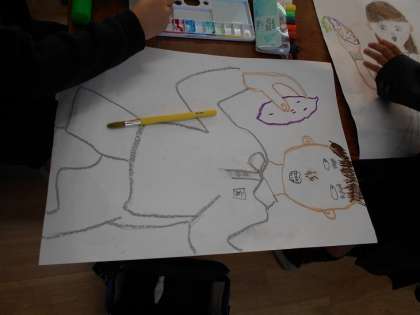 学習園で収穫した「おいも」の絵を描きました。