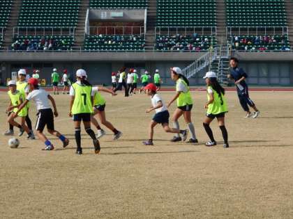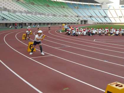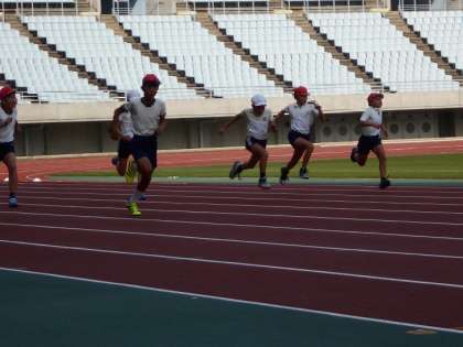 競技場と第2陸上競技場で、100m走、400mリレー、サッカー、ドッジボールをしました。