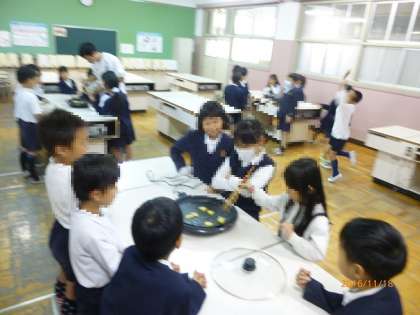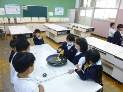 学習園で栽培したおいもを、ホットプレートで焼きました。