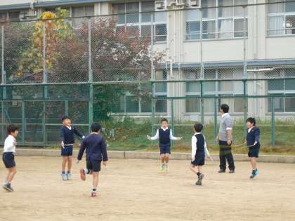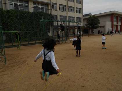 1時間目の休み時間、元気になわとびを跳んでいます。