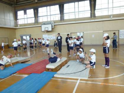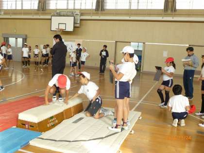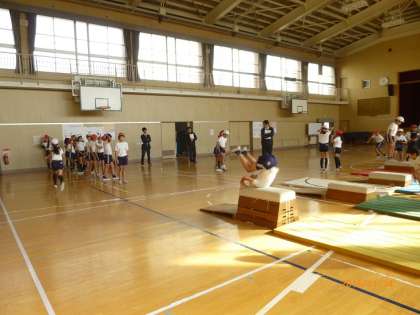 自分のフォームをすぐに確認して、フィードバックするために、タブレットを使っています。友だち一緒にタブレットで動きを確認しました。友だちと協力しながら学習している姿です。