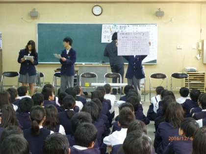本校の卒業生も含まれている生徒会、子どもたちは真剣に聞いていました。