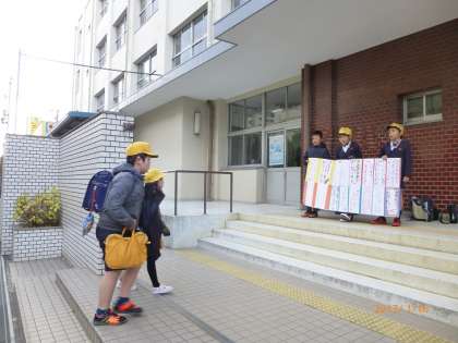 1月16日(月)〜1月20日(金)はあいさつ週間です。子どもたちが登校してくる時に、運営委員会の子どもたちが門に立って、「おはようございます」と声をかけます。