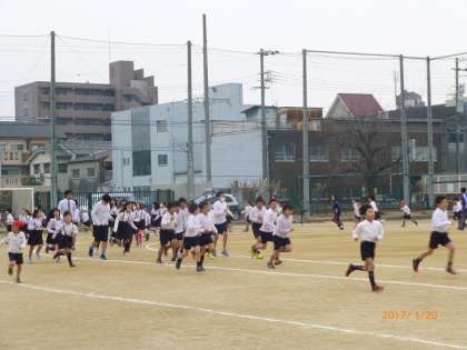 1年・3年・5年の持久走の様子です。