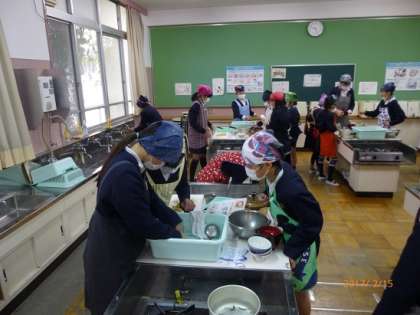 5年生はご飯を炊いて、お味噌汁を作りました。