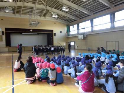 新しく小学校へ入学する1年生と、今1年生の子どもたちとの交流会です。
