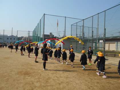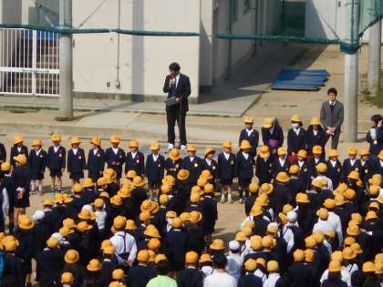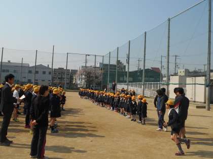 お兄さん、お姉さんの前で少し緊張気味な1年生です。