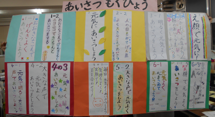 子どもたちが、持っているのは、全学級のあいさつ目標です。