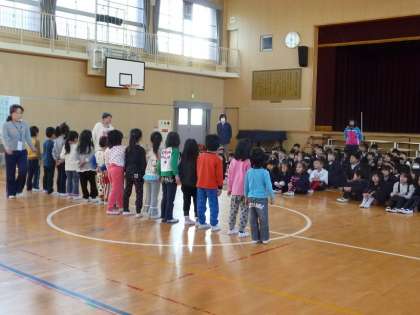 2年生が、4月から加美北小学校に入学する子ども達に、歌を歌ったり、ゲームをしたり、学校案内をしました。