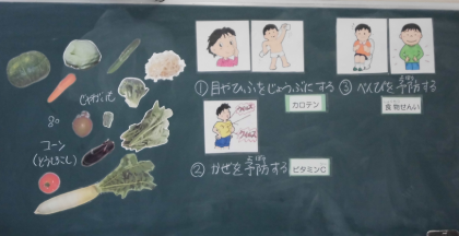 5年1組の食育の授業は、「進んで野菜を食べよう」でした。