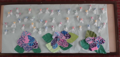6月に入り、玄関の掲示板が4年生の作品になりました。