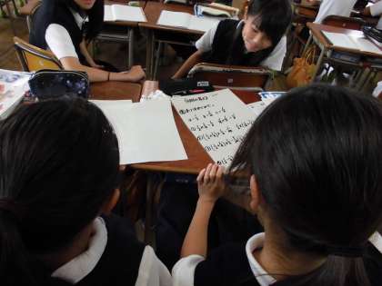調べた結果をグループで話し合い、発表しました。