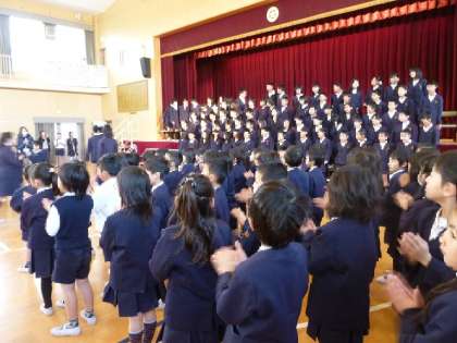在校生から卒業生に、歌や言葉のプレゼントを送りました。