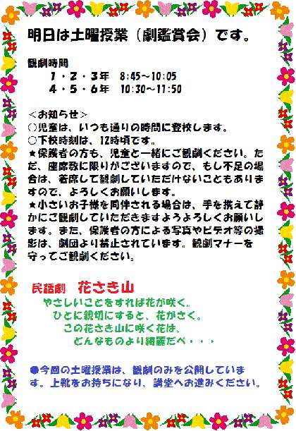 明日は、土曜授業です。