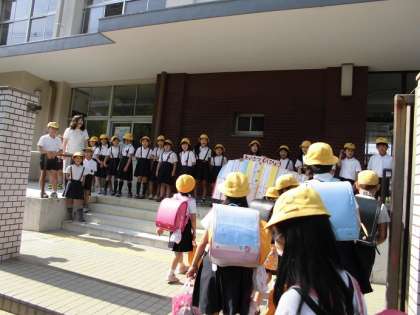 元気よくあいさつをしています。