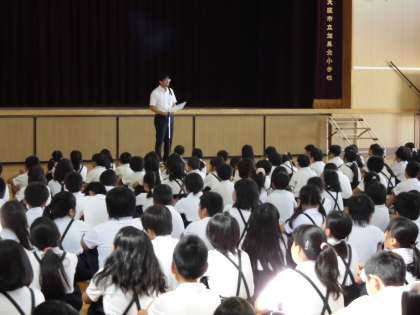 さて、いいよ今日は、1学期の最後の日ですね。この1学期の間に、みなさんの真剣な顔、笑った顔、怒った顔、泣いた顔、いろいろな表情をたくさん見せてもらいました。きっと、楽しかったことも、辛かったこともいろいろあったことと思います。嫌な気持ちになることもあったと思いますが、みんな、とってもよくがんばった1学期だったと思います。