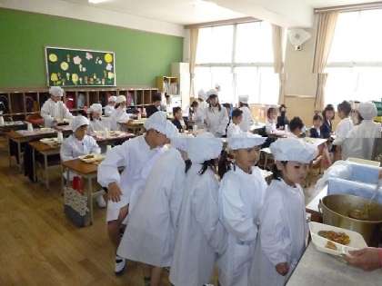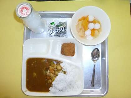 小学校でのはじめての給食は、「カレーライス」でした。