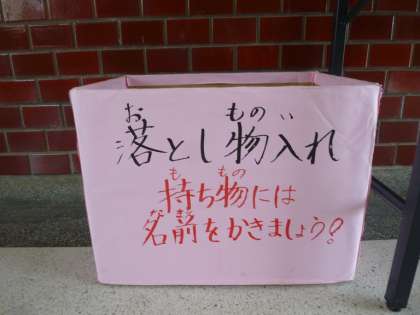 なかなか持ち主のもとにもどることができない落し物です。「物を大切に」持ち物には、名前を書きましょう。