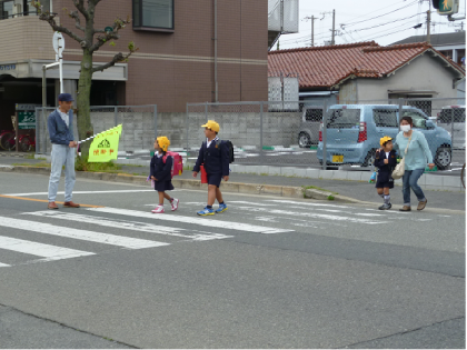 腕に黄色い腕章をつけて、見守ってください。登校旗を持っていただける方には、配布させていただきますが、子どもに持って帰ってもらうのは危ないですので取りに来ていただけるとありがたいです。
