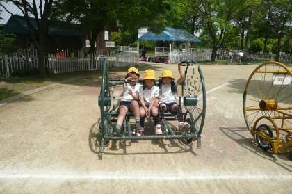 自転車ひろばでは、譲り合って仲良く自転車に乗りました。