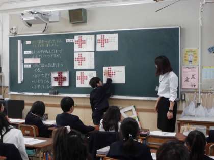 2年生の算数の授業の様子です。みんなの前で自分の考え方を説明できるように・・・と考えて、取り組んでいます。